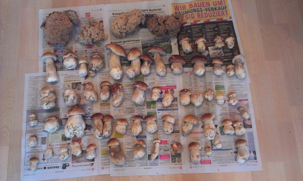 Hier im Raum Kassel geht es endlich los, die Steinpilze sind nun endlich da! Zwar habe ich bereits auch schon in den letzten Wochen immer mal wieder einige finden können, doch heute war ein Sahnetag