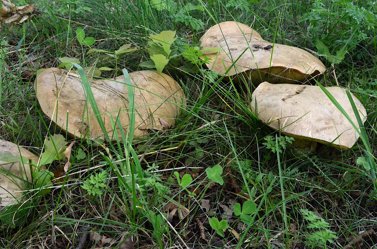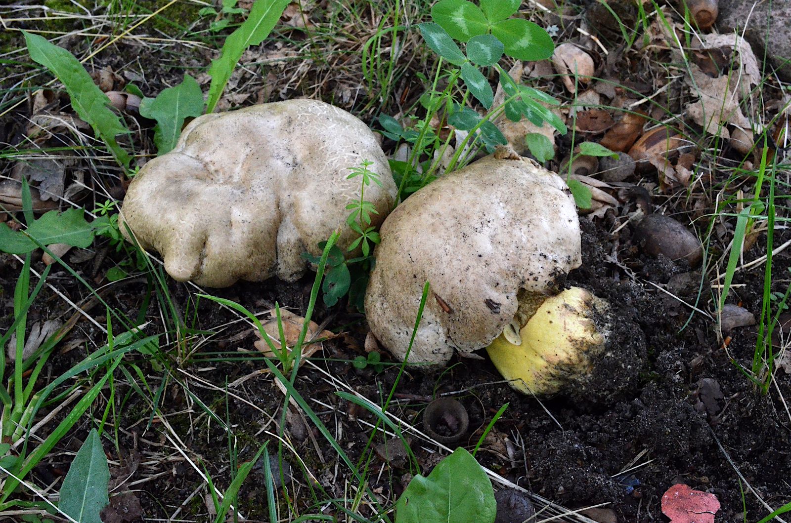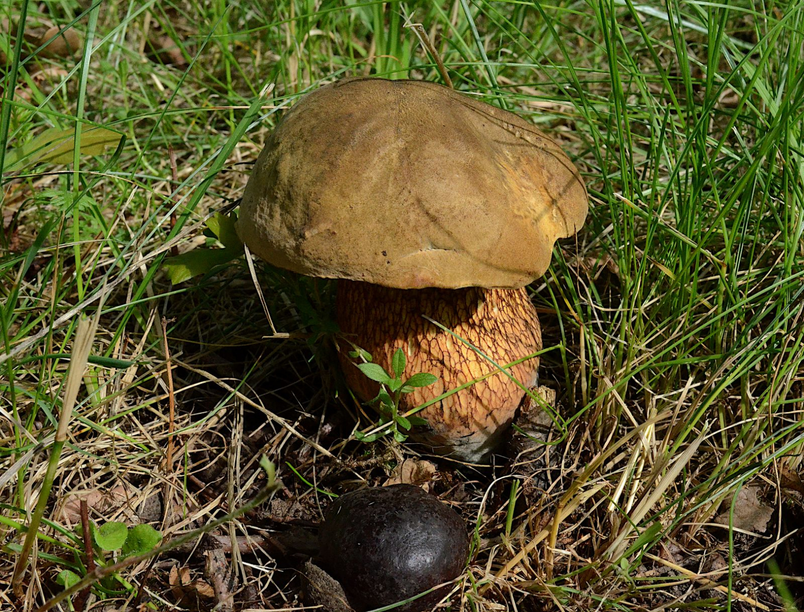 Und, zur Überraschung auf diesem Terrain, der WuBi (=Wurzelnder Bitterröhrling). Neuer Fundort in Offenbach.