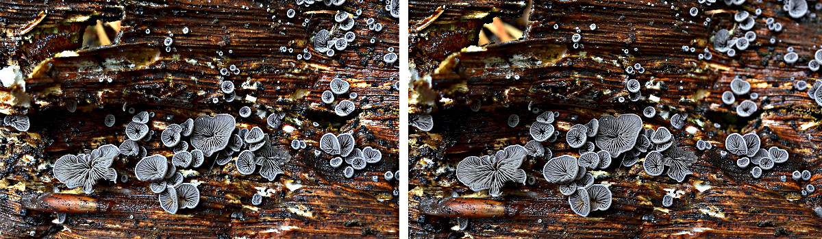Und schön vergesellschaftet mit dem Liliput-Seitling Resupinatus applicatus.