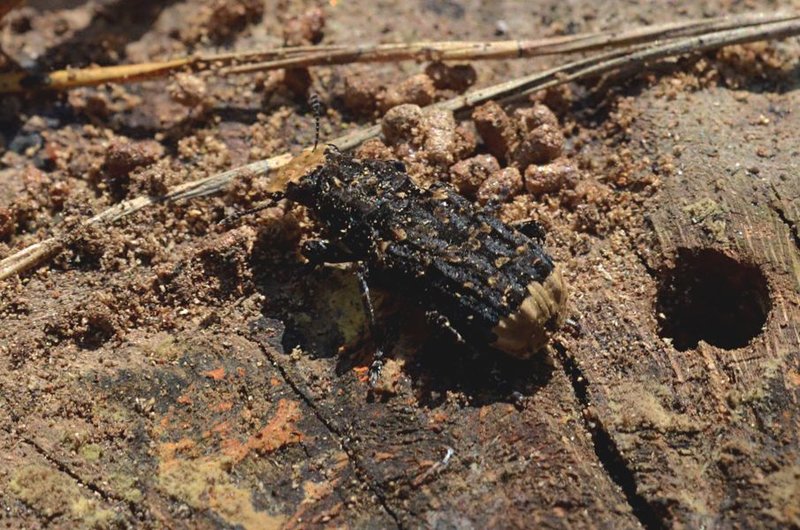 ... und stellt sich heraus als Großer Breitrüssler, Platystomos albinus. Tarnmuster: Vogelkot.