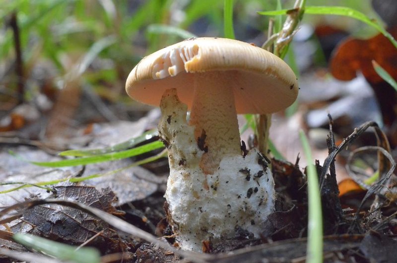 Zumindest hier bei dem hingerichteten Exemplar sehe ich keine Brauntöne an der Volva...