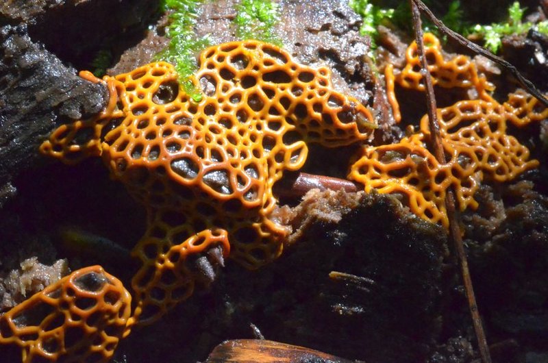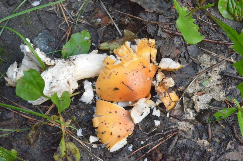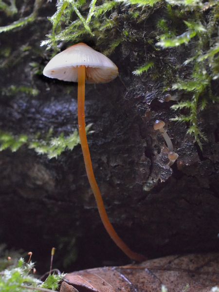 Mycena crocata, der Orangemilchende oder auch Gelbmilchende Helmling