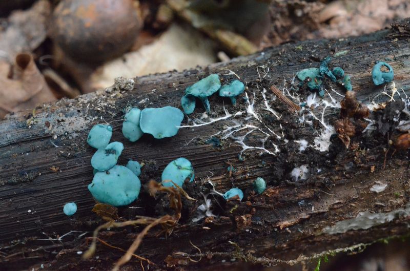 der Grünspanbecherling Chlorociboria aeruginosa.
