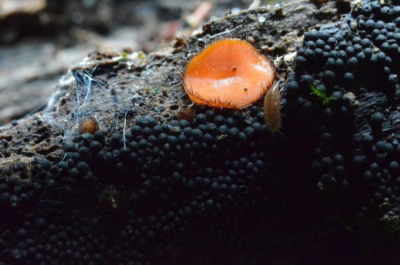 Aber, beim näheren Hinsehen, outeten sich drumherum diese winzigen schwarzen Kügelchen (ca. 0,6 mm das Stück). Kernpilze?
