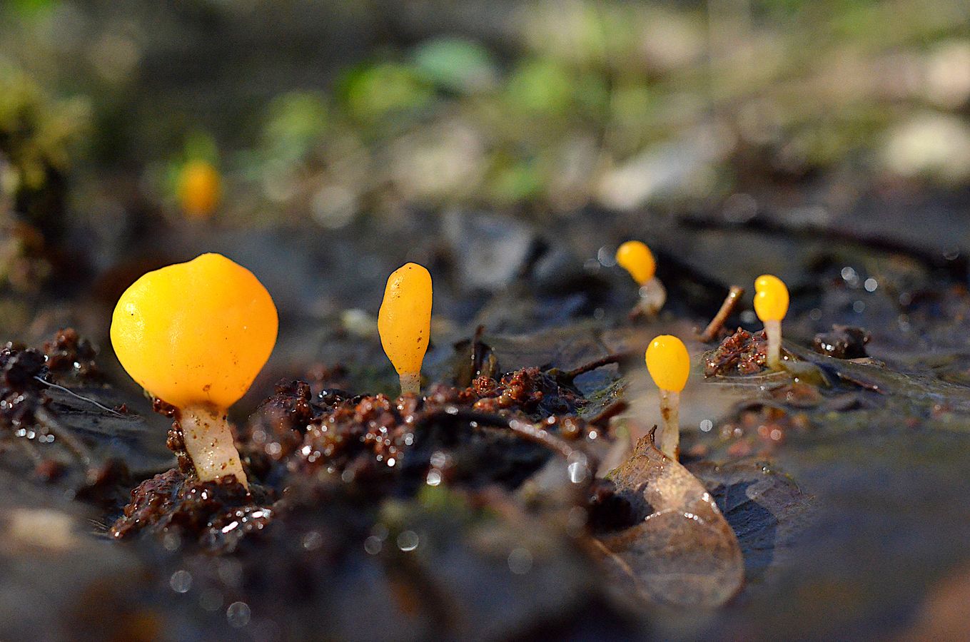 Der gar nicht allzu häufige Sumpfhaubenpilz Mitrula paludosa