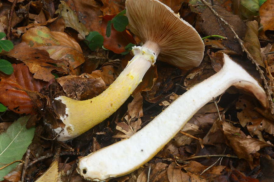 Die vorgestellten Exemplare wuchsen in einer größeren Gruppe, in der auch Pilze wuchsen, die einen wesentlich helleren Braunton besaßen (Hut und Lamellen).
