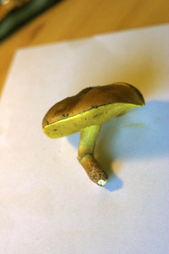 - Beschaffenheit des Hutes (schmierig, trocken, glatt, rau, etc.): schmierig bei Nässe, sonst glatt, braun