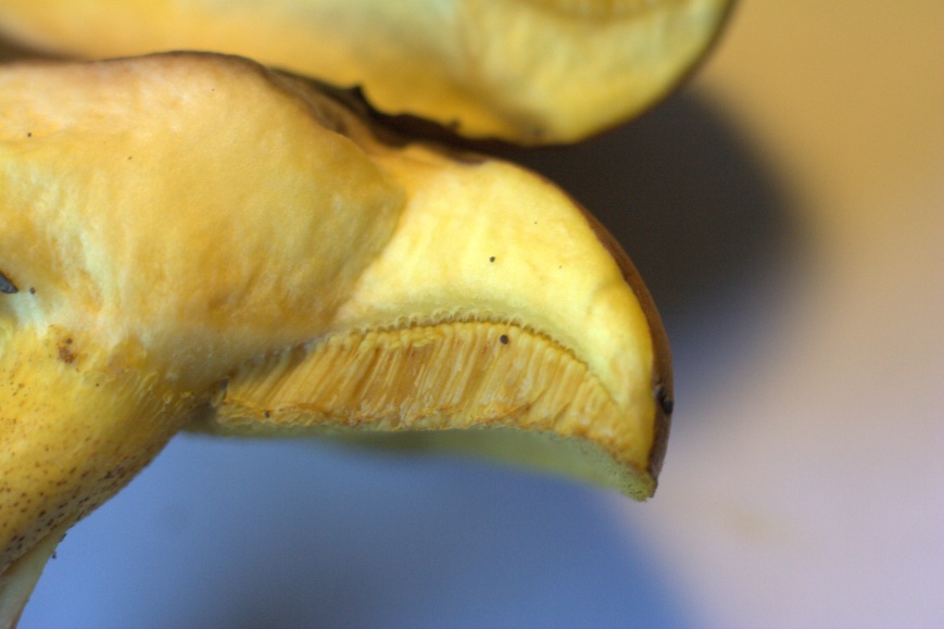 Röhren: kräftig gelb, am Stiel angewachsen, "eckig"