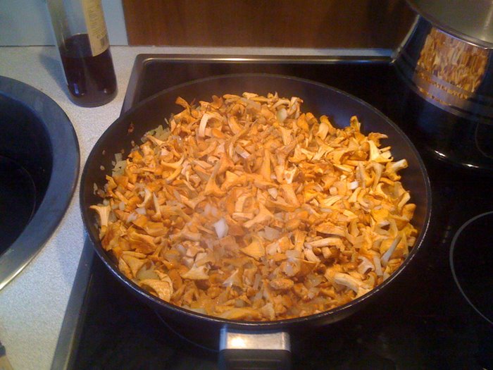dann die schwammerl hinzufügen und warten bis das wasser verdampft ist.(hier kann man ruhig den herd etwas höher drehen)