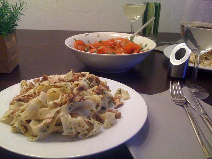 das wars wenn alles geklappt hat kleben die pilze an den bandnudeln so solls sein