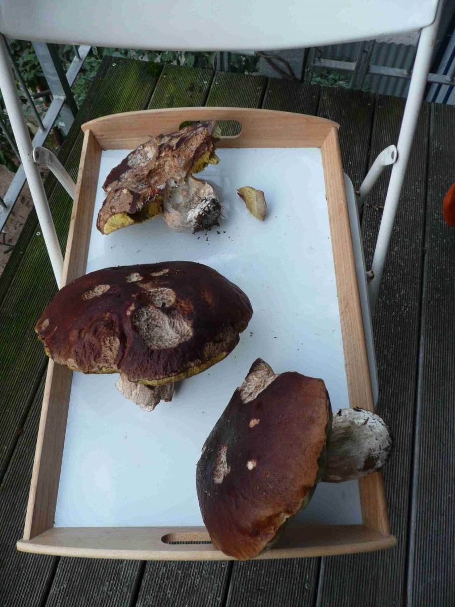 natürlich kann man Steinis in diesen Größen nicht in Top-Qualität finden, das ist doch klar. Aromatisch waren alle drei, auch der im 2. Pilz oben zu sehende noch absolut ok. Wenn man Ssie trocknet oder in sehr feine Würfelchen schneidet kann man durchaus auch Pilze verwenden, die etwas älter sind. Ich verstehe aber, dass das nicht jedermanns Geschmack ist.