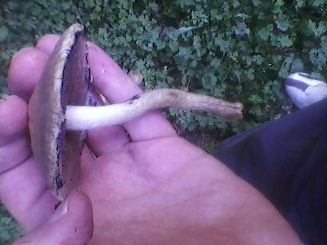 Heute haben wir einen sehr ähnlichen Pilz gefunden. Nur bei diesem Exemplar konnten wir keinen bitteren Geschmack feststellen. Weiß jemand Rat?