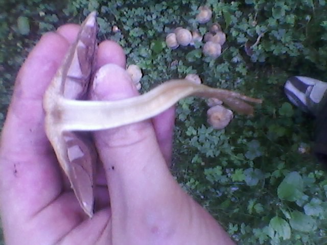 und der Stiel lässt sich um 180 ° drehen auf 2cm ohne, dass was kaputtgeht.Es gab noch einen zweiten Ring mit den selben Pilzen, aber etwas helleren Hüten hatten und eine Stelle (konnte keinen Ring ausmachen) mit dunkleren.