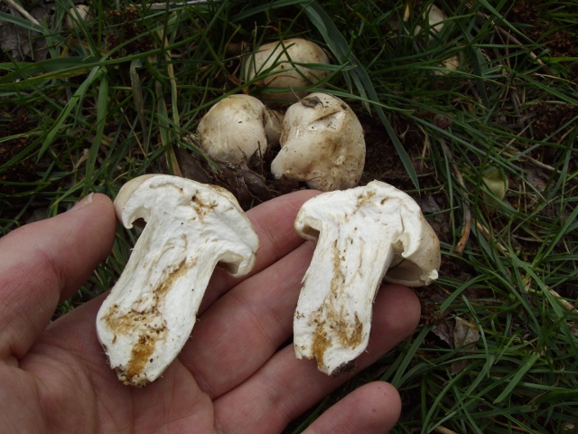 Ich meine zu sehen, dass das Fleisch leicht rötet–¦ damit würde ich Karbol/Anis ausschließen. Ich habe mal gelesen alle rötenden Champignons sind essbar, stimmts?