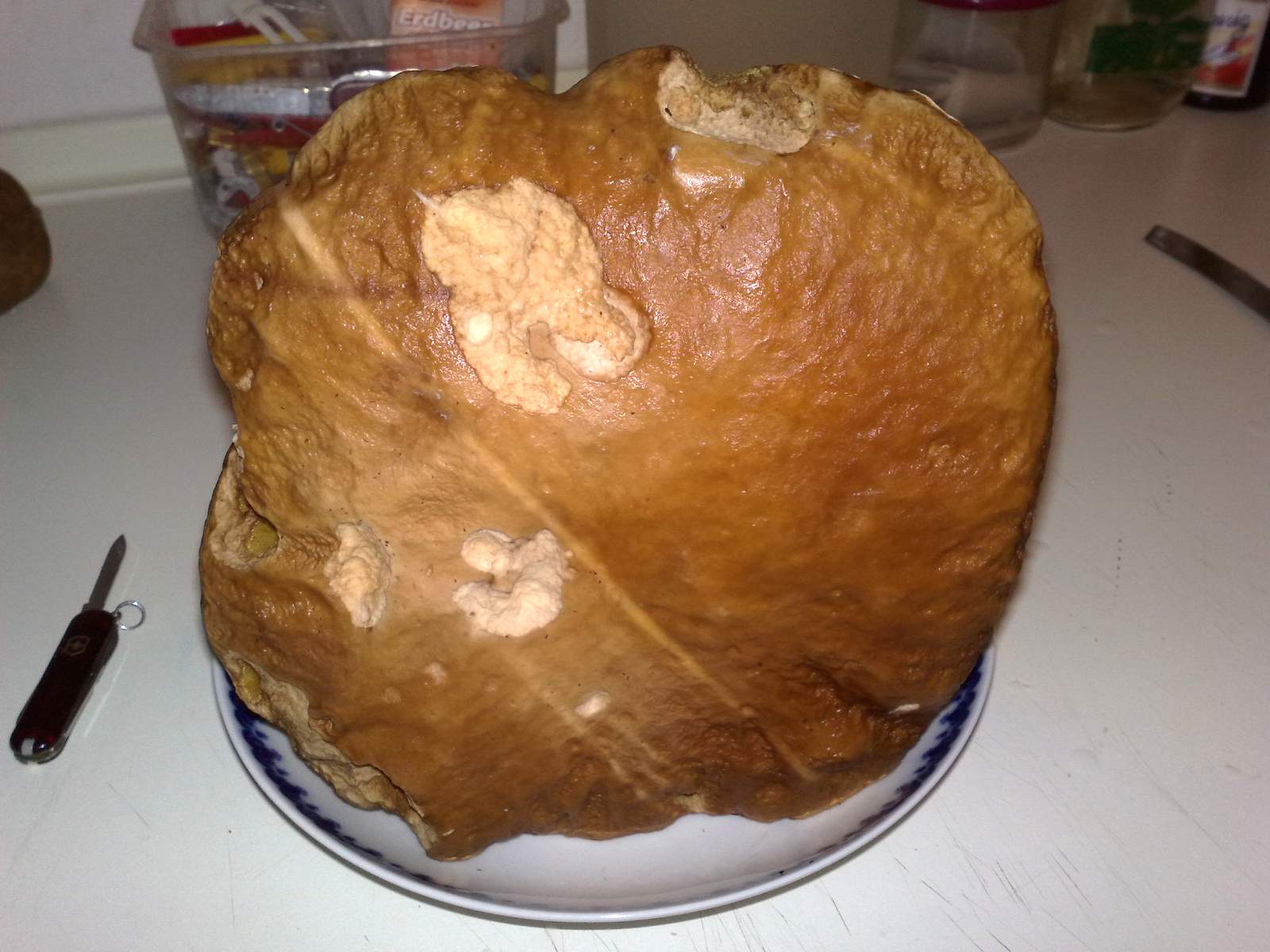 Wobei alles total trocken und fest an ihm ist und der Schwamm sehr dünn, ansonsten hätte er sicher das Kilo durchbrochen. Mir soll's recht sein, dafür konnte ich völlig madenfreie leckere Pilzschnizel geniessen ![]()