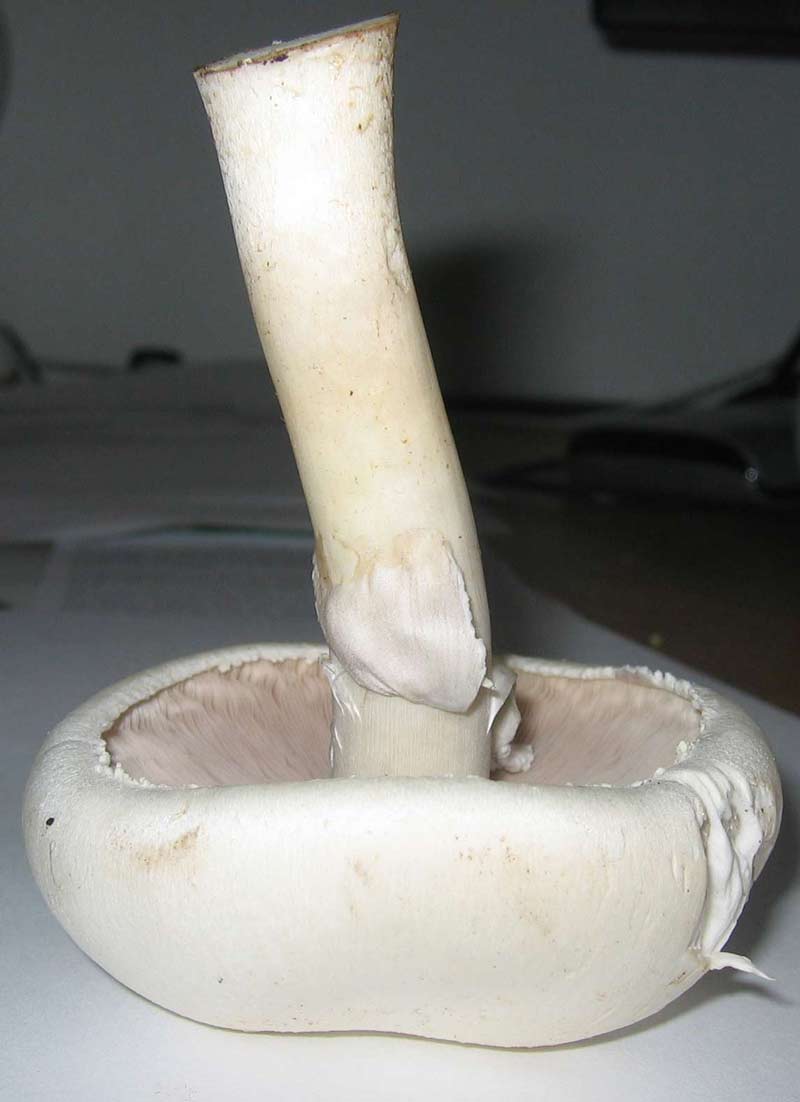 Der Stiel bzw. der Hut wird nicht gelb, also kann man den Karboleggerling bzw. Anischampignon wohl ausschliessen, ausserdem riecht der Pilz ziemlich neutral. Da die Lammellen eher kakaofarben sind als weiss, wird es wohl auch kein Knollenblätterpilz sein.