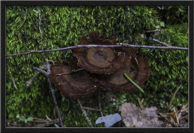 Ausserdem gab es ein paar Gallenröhrling (Tylopilus Feleus / Foto 2 und 3) sehr gut am Netz und den Rosa Lamellen zu erkennen (natürlich sollte hier Röhren stehen, da hab ich mich vertan, danke an Maussmann) , Pantherpilz (Amanita pantherina - Foto 4 ), Stinkmorchel (Phallus impudicus - Foto 5) sowie den Dauer-Porling (Coltricia pernnis - Foto 6) -