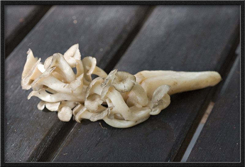 Leider hatte ich heute bei dem Sturm und Regen die Kamera nicht dabei. Ich habe also ein kleines Stück abgebrochen, es dürfte sich hierbei um den Eichhasen handeln, Erstfund, den habe ich noch nie gefunden. Ausserordentlicher guter Duft von dem Pilz. Stand im Laubwald auf einem Stück alten Holz, sehr jung und frisch.