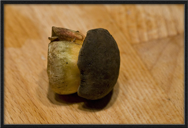 Diesen Röhrling habe ich schon desöfteren gefunden, ich weiss allerdings nicht um welchen es sich hierbei handelt, Röhren sind deutlich gelb, dunkel braun bis schwarzer Hut, Stiel gelb mit leichten Rottönen. Kann da jemand weiterhelfen ?, wurde in der Nähe von Tannen gefunden. Nicht blauend bei Schnitt.