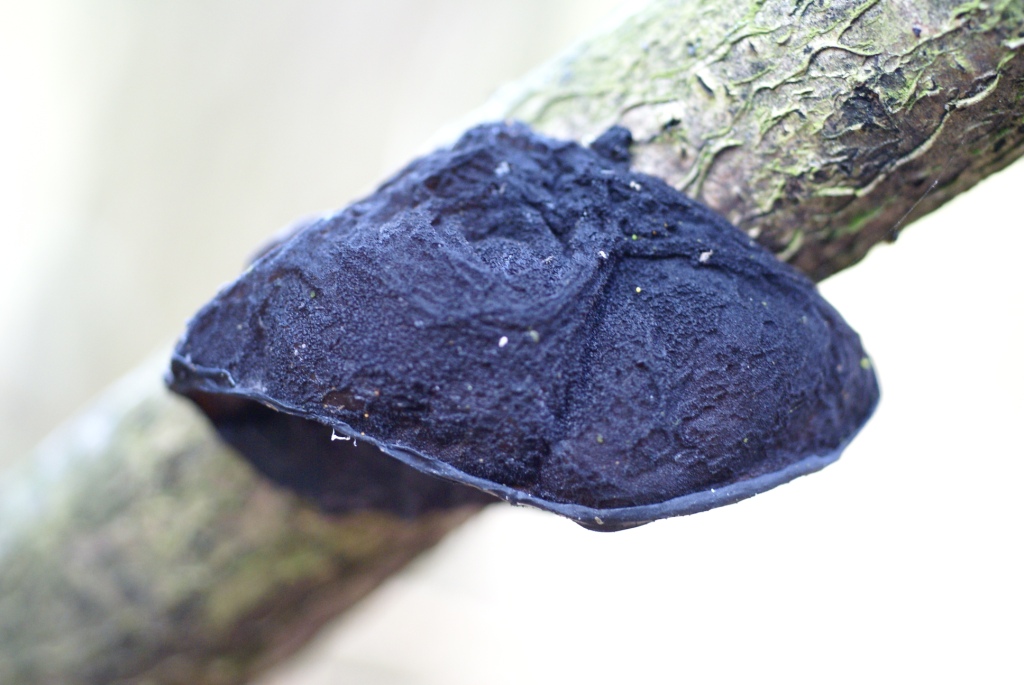 Der Pilz war ca. 3 cm breit, schwarz und fühlte sich wabbelig an. Im ersten Moment dachte ich an Judasohren, aber sie fühlten sich anders an, als die Judasohren von neulich.Pilz 2 - Warziger Drüsling?