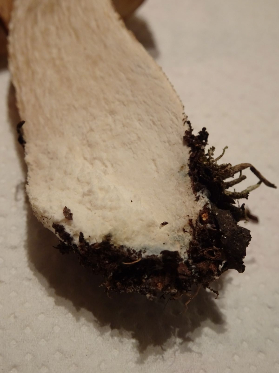 Der Generalverdacht L. scabrum (ss. l.) gilt aber nur für den Fall, dass auch das braunhütige Exemplar unten links bzw. die beiden hellen unten rechts wirklich keinerlei Blaufärbung in der basalen Stielrinde hatten, was auf den Fotos nicht völlig ausgeschlossen werden kann. Andernfalls müsste man in Richtung L. cyaneobasileucum denken (oder ggf. L. nucatum, wie von Matthias überlegt).