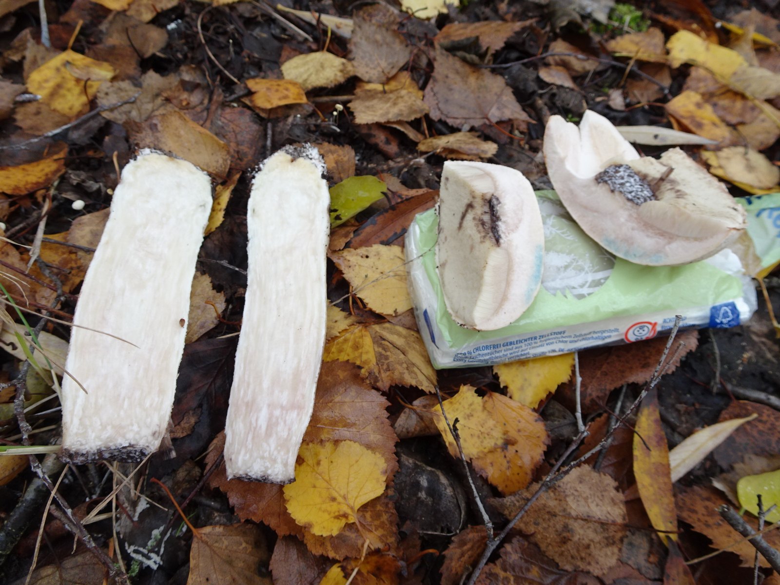 Ich habe diesen Raufuss schon einmal gefunden und mich über die rote Verfärbung beim Anschnitt gewundert. Heute fand ich ihn wieder und möchte ihn gerne bestimmen.