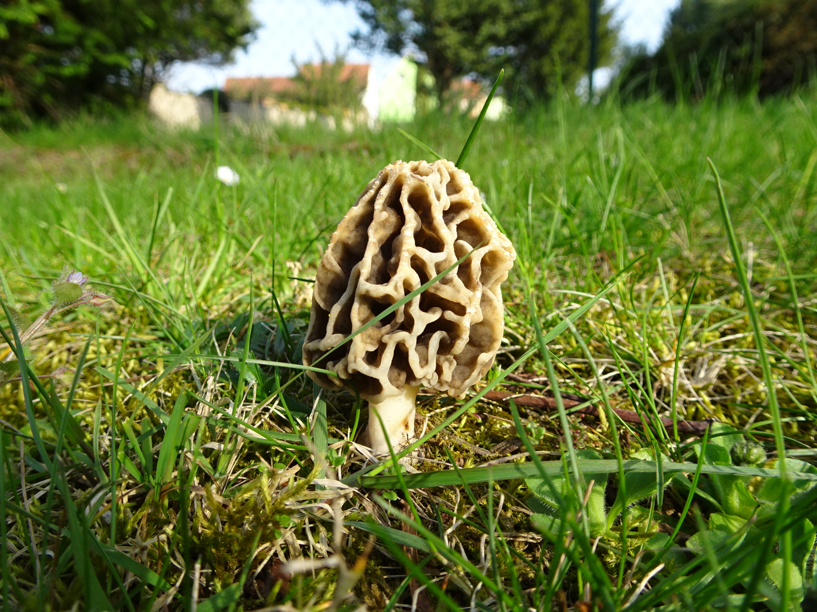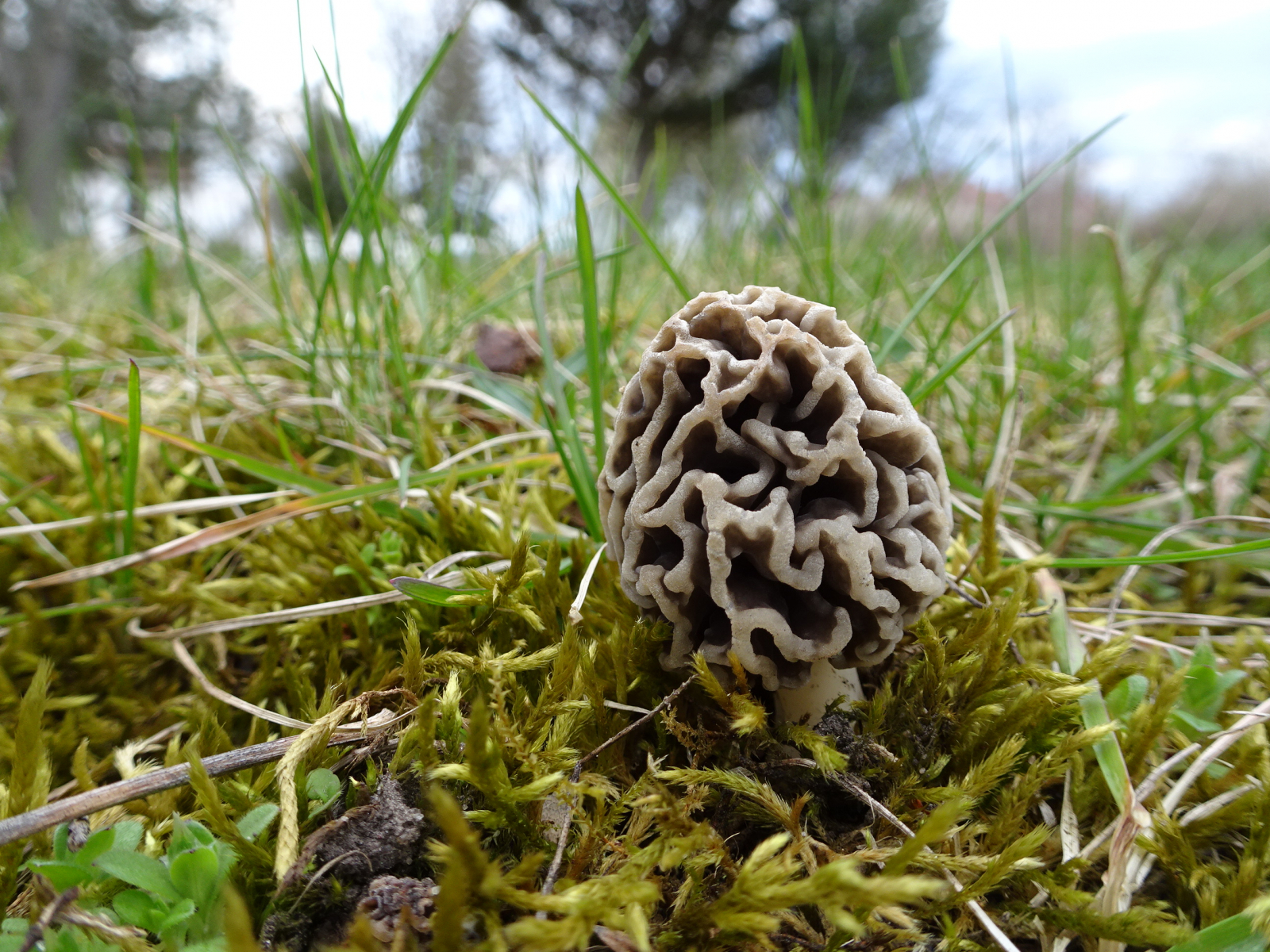 letztes Jahr fiel die Morchelsaison aufgrund der Trockenheit aus. Der Winter war diesmal sehr schneereich und der Frühling sehr nass. Gestern ging ich eine kleine Runde, zu dem mir bekannten Morchelplatz. Es ist eine Wiese mit Moos und es steht dort eine alte Kastanie.