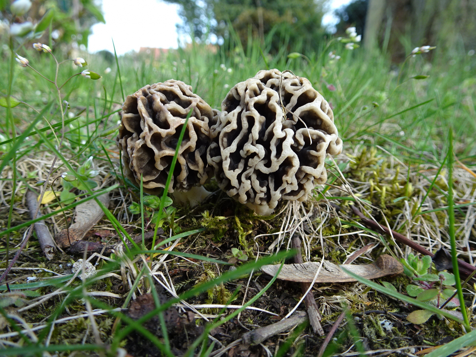 Völlig entzückt schaute ich mir die ersten kleinen Morcheln an. Sie beginnen jetzt, pünktlich wie immer, zu wachsen. Ich werde täglich nach ihnen schauen, auf meiner kleinen Runde.