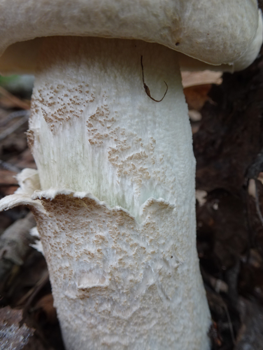 Leccinum-Sporen sind braun, deshalb färben sich die Stielschüppchen immer im Alter zumindest braun/bräunlich. Der wollige Filz kondensiert bei L. cyneonbasileucum im Alter zu kleinen Schüppchen, das ist normal. Und die werden dann auch bräunlich.