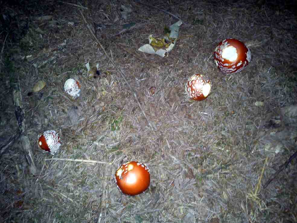Mich traf fast der Schlag. Ich sah Fliegenpilze über Fliegenpilze, hunderte waren im ganzen Wald. Und ich dachte –žwo Fliegenpilze sind, gibt es auch Steinpilze.. aber ich kann mir nicht vorstellen, dass es diese in diesen Wald gibt.–œ