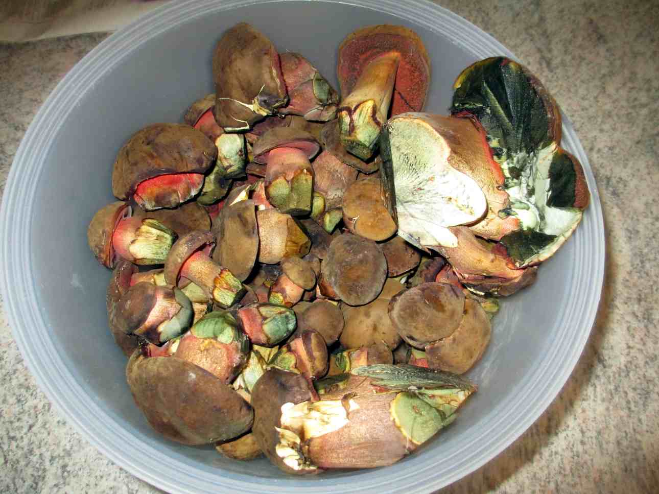 Gefunden habe ich viele junge Steinpilze, 1 Rottfüßchen und Maronen. Dann noch 2 bis dahin mir unbekannte Röhrlinge, wie sich später herausstellte waren es der Kuhröhrling und Pfefferröhrlinge.