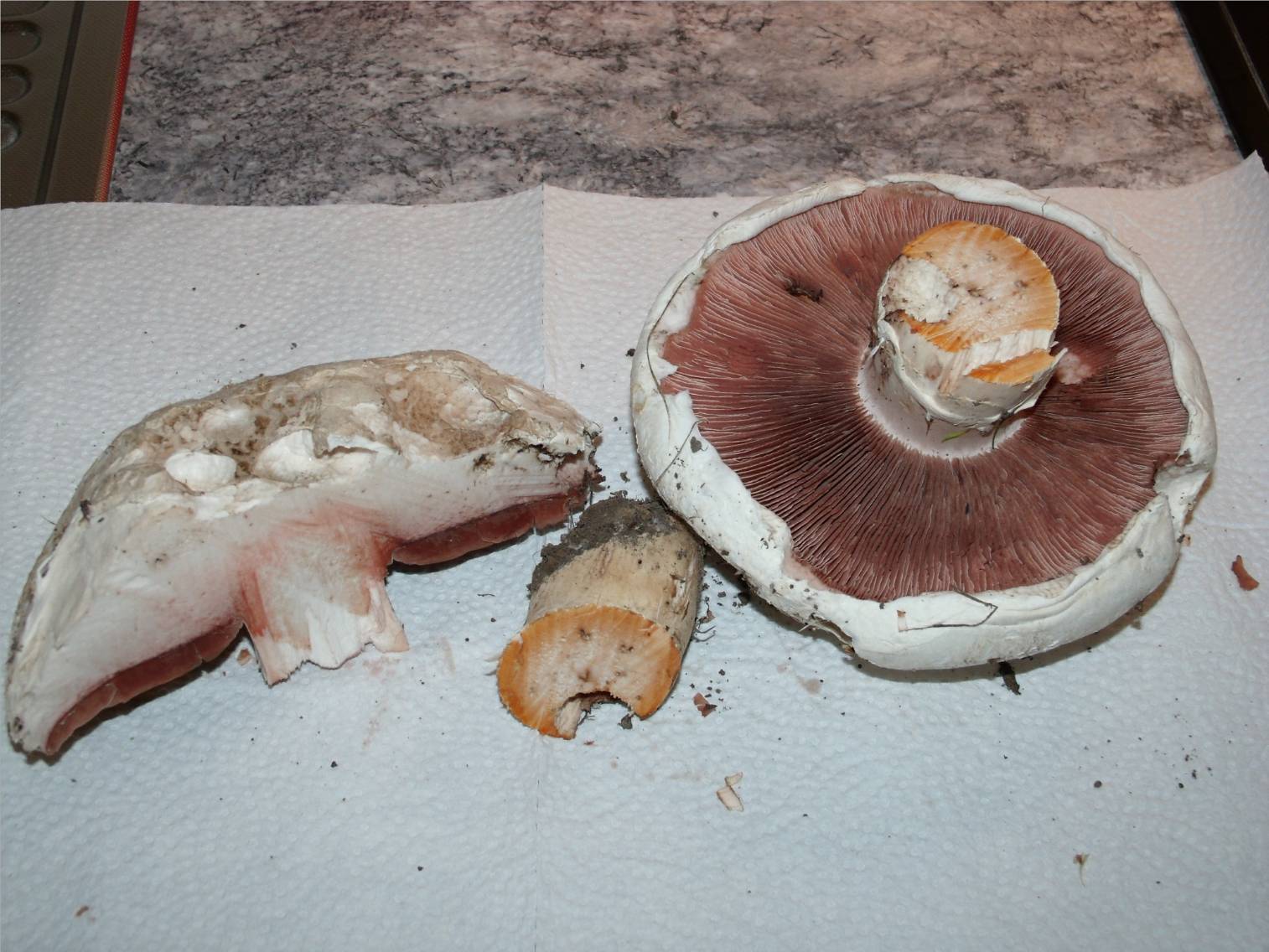 Den Champignon habe ich aus der Erde gedreht und das abgeschnittene Teil von dem ganzen Champi liegt mit auf dem Foto.