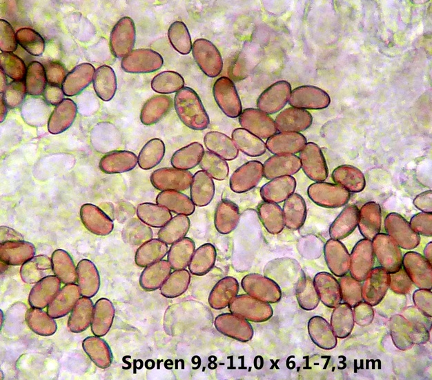 Hut jung spitzkegelig, im Alter flach ausgebeitet mit Höcker. Geruch stechend scharf, chemisch. Huthaut faserig, trocken. Stiel grau/weiß, hohl, innen bräunlich verfärbt. Außen stark mit hypoiden Fasern bewachsen. Caulozystiden habe ich nicht gefunden. Stielbasis nicht verdickt, aber mit kleinem "Söckchen". Lamellenschneide mit großen Büscheln Cheilozystiden. Pleurozystiden rundlich. Keine Kristalle gefunden. Basidien 4-sporig. Sporenmaße siehe Foto.