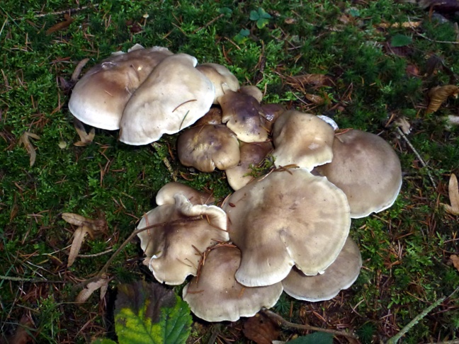 Ein Rudel Mönchsköpfe (Infundibulicybe geotropa)