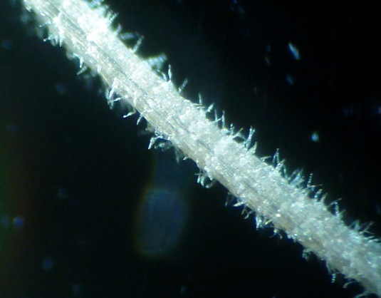 Zum dritten seien noch die Markstrahlen erwähnt, die bei der Eiche besonders ausgeprägt sind. Markstrahlen sind flache Versorgungsbahnen, die den Stamm in Längsrichtung durchziehen, und die vom Kern bis zur Bastschicht reichen können. Diese Markstrahlen geben dem Eichenholz seine Festigkeit. Sie sind uns auch bei der Bestimmung hilfreich, weil sie noch langsamer verwittern, als das Splintholz. In der Draufsicht auf alte Sägeschnitte bleiben sie immer etwas erhaben stehen. In der Längsansicht der Stämme und Stubben sind sie für das "gerippte" aussehen verantwortlich.