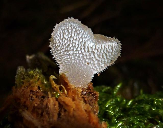 Doch gleich beim Einstieg in den Fichtenwald traf ich auf den Zitterzahn (Pseudohydnum gelatinosum). Schnell ein paar Fotos gemacht und weiter gehts.
