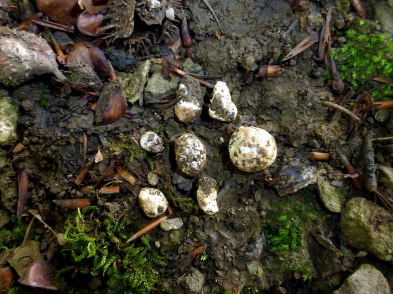 Die Ferkel können sich doch unmöglich wegen solch winziger Trüffelchen so eine Mühe machen. Das sind bestimmt ein paar völlig unreife Exemplare und wieder nicht bestimmbar.