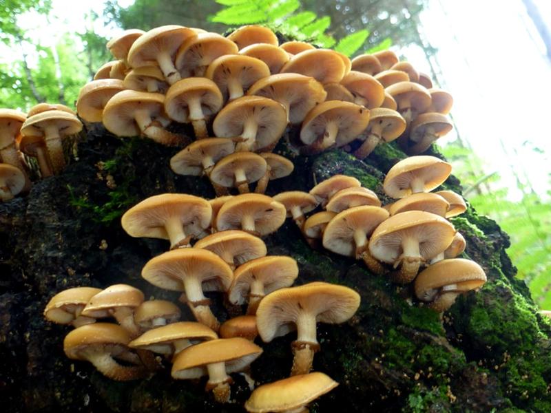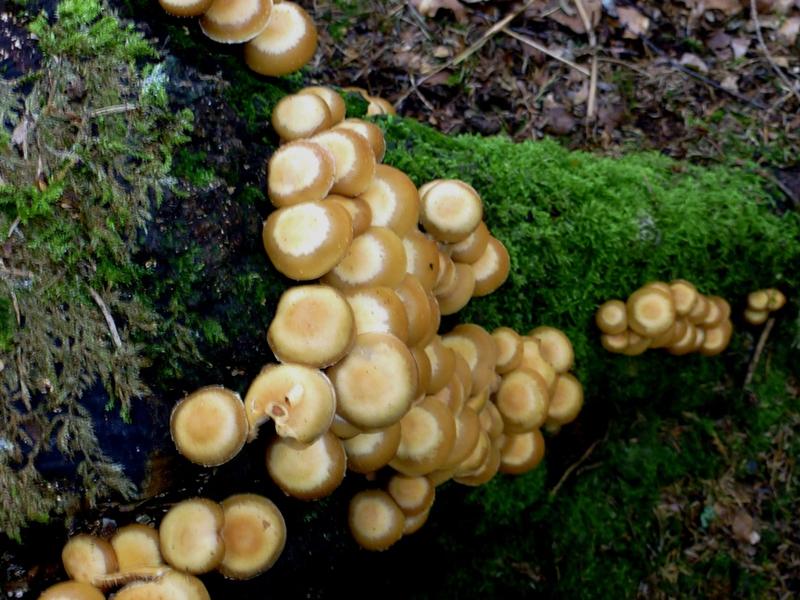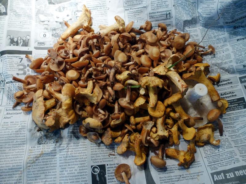 Stockschwämmchen und Gelber, vermutlich eßbarer Pilz samt seiner gut ein Dutzend Kollegen kamen zu streng wissenschaftlichen Untersuchungen mit nach Hause.
