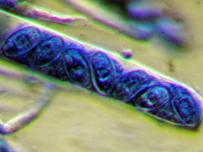 Gleich ging das Problem los. Entweder alles schön dunkelblau, aber nix wirklich zu erkennen, oder aber nur die Spitzen der Asci mager eingefärbt.