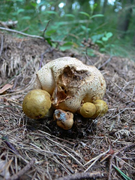 Habe bei uns am See in einem Bruchwald eigenartige Pilze gefunden. Sie sehen wie eine Mischung aus Bowist und Röhling aus. Der Pilze bestehen aus miteinander verwachsenen Teilen, wie man auf den Bildern gut sehen kann. Kennt irgendwer solche Pilze oder handelt es sich nur um eine Mißbildung?