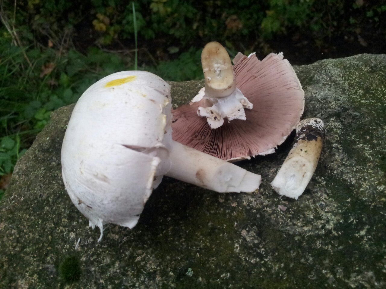 Der Pilz war nicht allein, es waren noch einige Geschwister vorhanden, ich habe aber nur einen großen mitnehmen können und hatte auch keine Zeit die anderen genauer anzuschauen, ich war nämlich beim Jogging und nicht allein