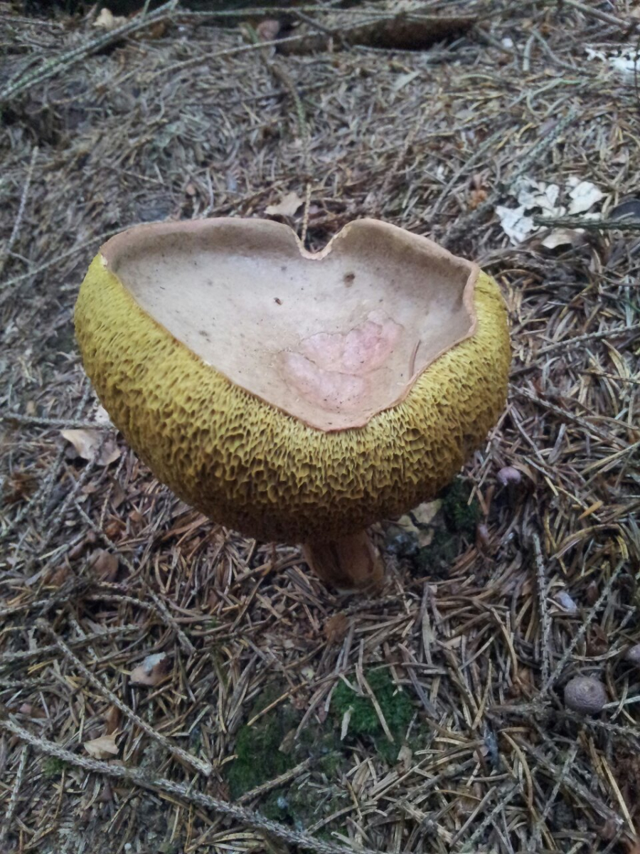 Der Pilz ist ca. 15 cm hoch und der Hut hat einen Durchmesser von ca. 12 cm.