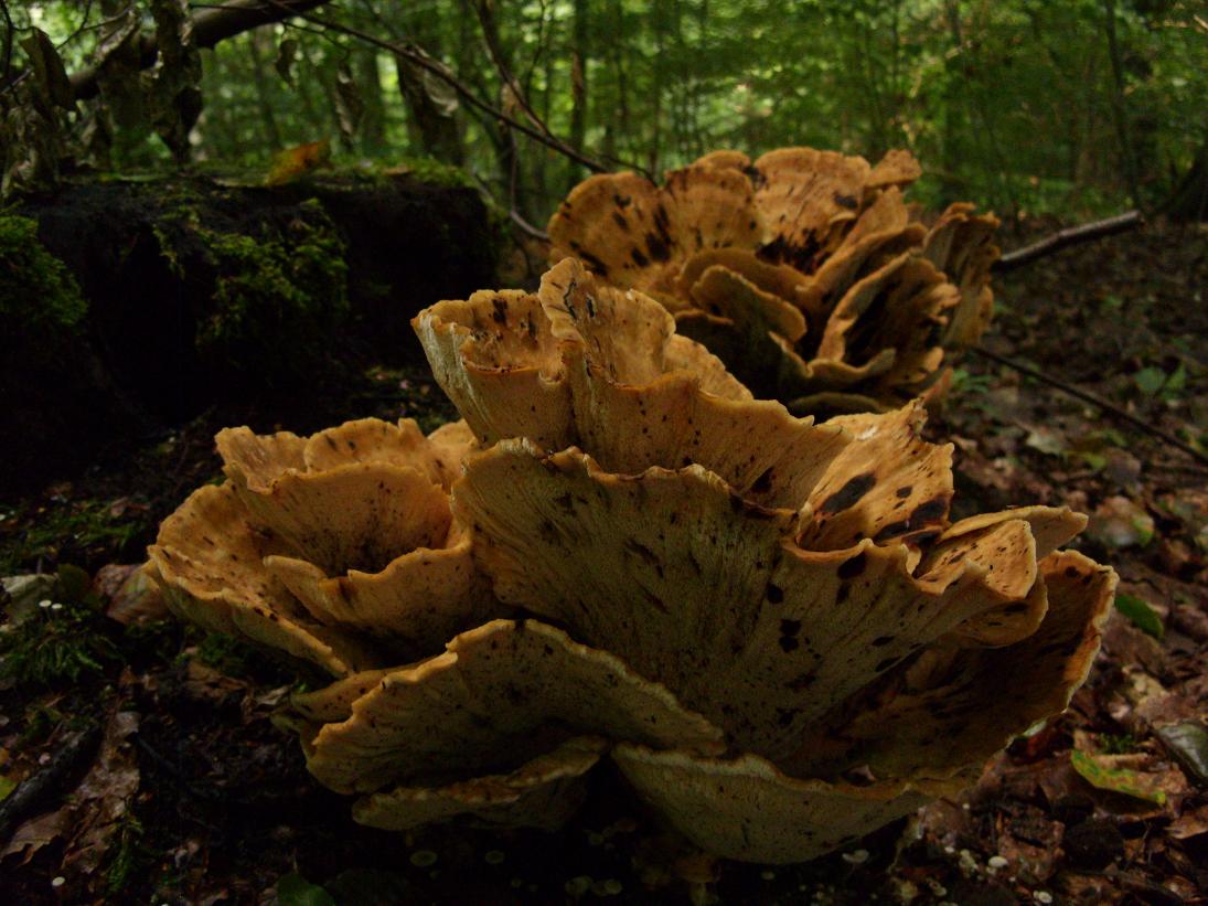 kennt jmd. diesen relativ großen Pilz? Ich habe ihn zusammen mit ein paar "Geschwistern" am Freitag um einen modrigen Baumstumpf in einem Buchen-Mischwald gefunden. Dort hatte er noch keine schwarzen Flecken, ich hatte nur keine Kamera dabei und konnte erst heute ein Foto machen. Allerdings auch nur ein schlechtes von der Seite, weil plötzlich die Akkus leer waren. Ich hoffe das reicht zum Bestimmen aus, weil ich gerne wissen möchte, ob die Art genießbar ist. Finde ihn aber auch so sehr schön.[hr]