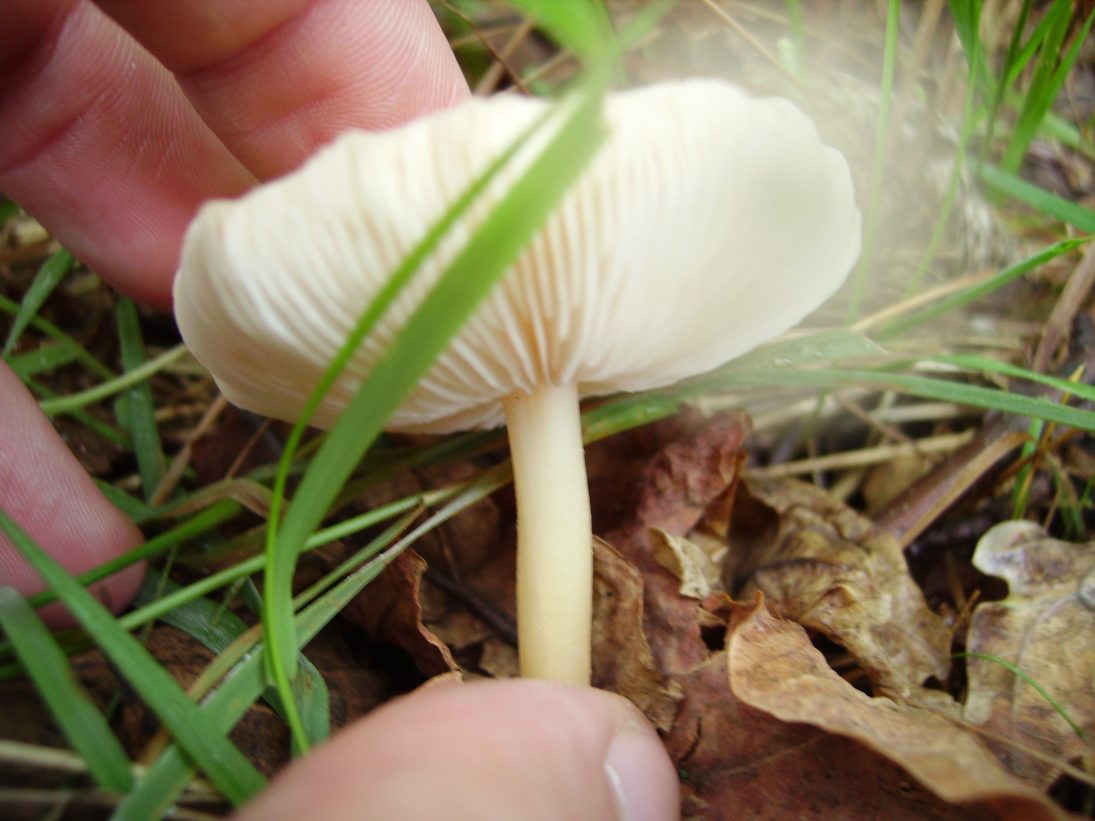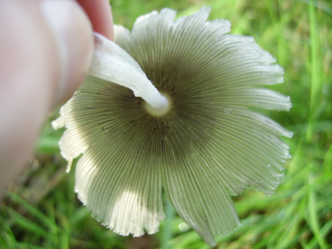 Ich dachte zuerst an Düngerlinge, aber wie ihr seht sind die Lamellen gleichmäßig gefärbt.