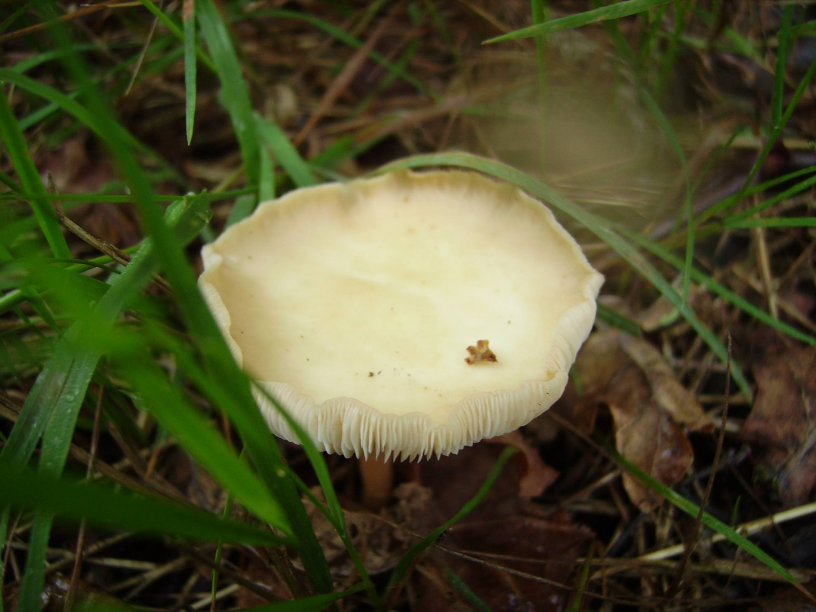 Hier noch ein komplett Weißer, der Hut ist in der Mitte ebenfalls nach unten gewölbt und etwas dunkler (bräunlich).