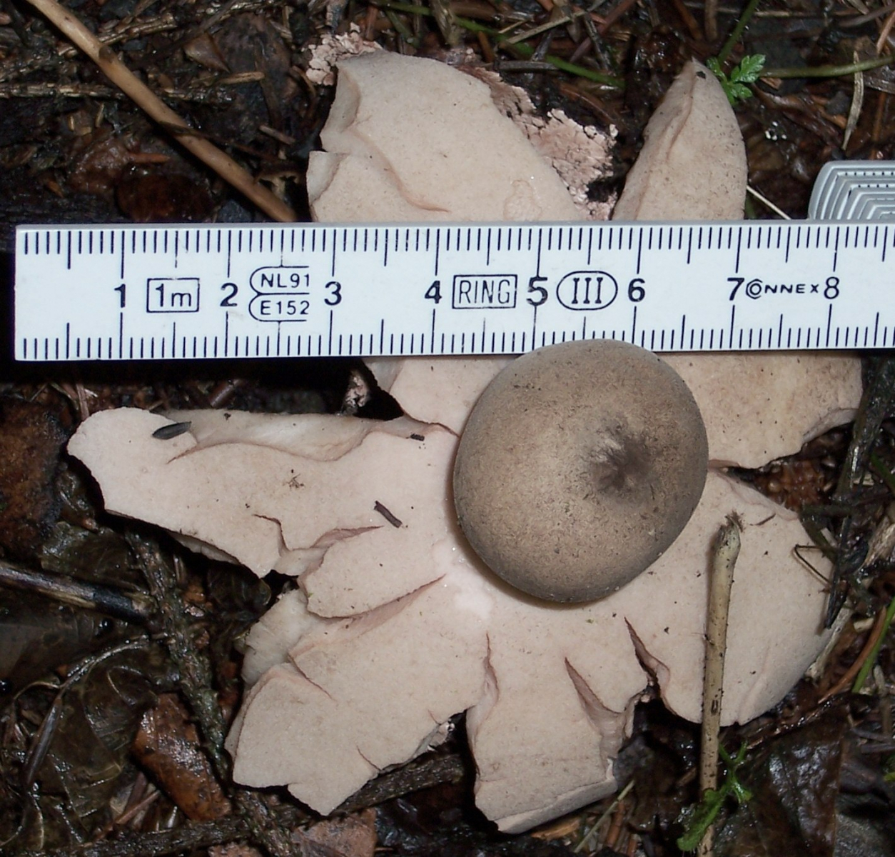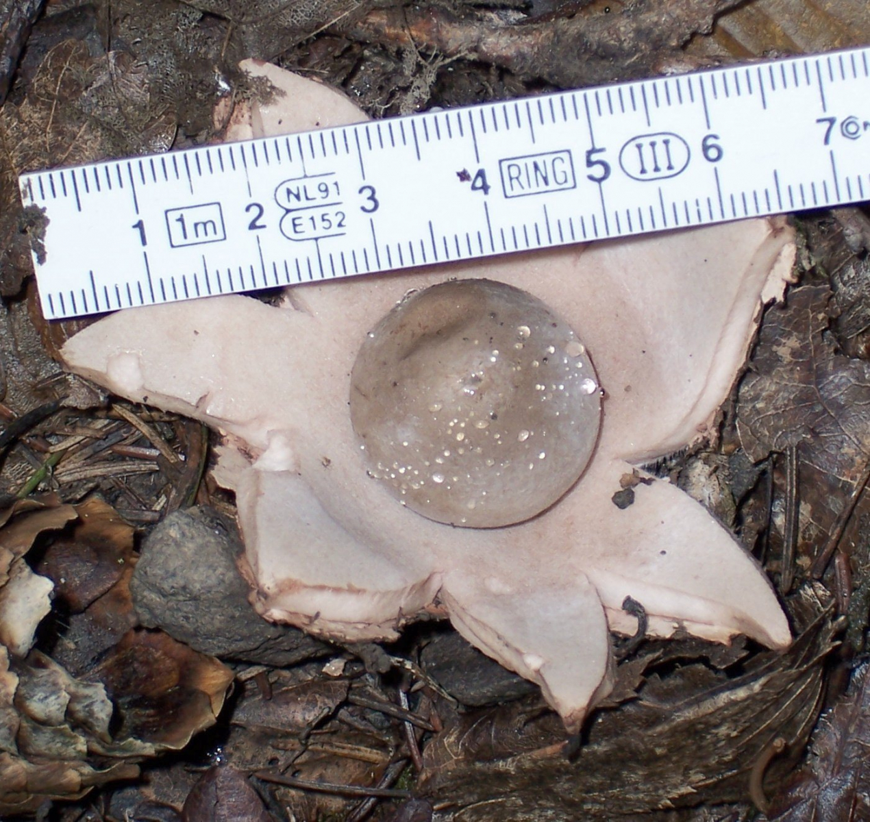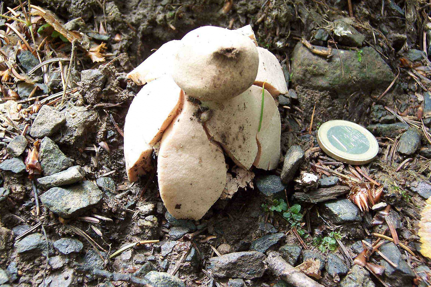 (9) Contex (Fruchtkörper oberhalb der Röhrenschicht) kastanienbraun, darunter die Röhrenschicht, die auf Grund der Entnahmestelle nicht ganz typisch ist.
