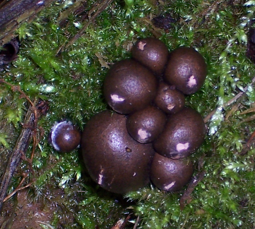 Die Sporenmasse war in Natur hellocker, aber auch das passt zur Beschreibung in Die Myxomyceten, Band 1 / Hermann Neubert, Wolfgang Nowotny, Karlheinz Baumann. Gomaringen 1993. S. 131-139. Nach dem Bestimmungsschlüssel in diesem Buch kommt auf Grund der Größe aus dieser Gattung nur der Blutmilchpilz (Lycogala epidendrum) in Frage.