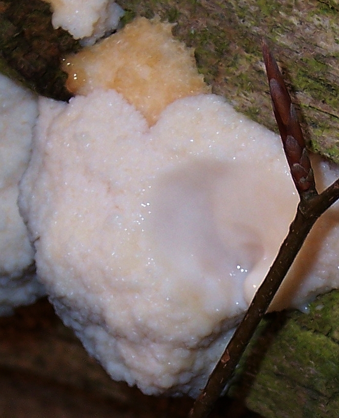 Konsistenz des Fruchtkörpers: hart, aber spröde. Es war kein Problem, Proben abzubrechen. Ph. igniarius ist wesentlich härter und vor allem zäh.