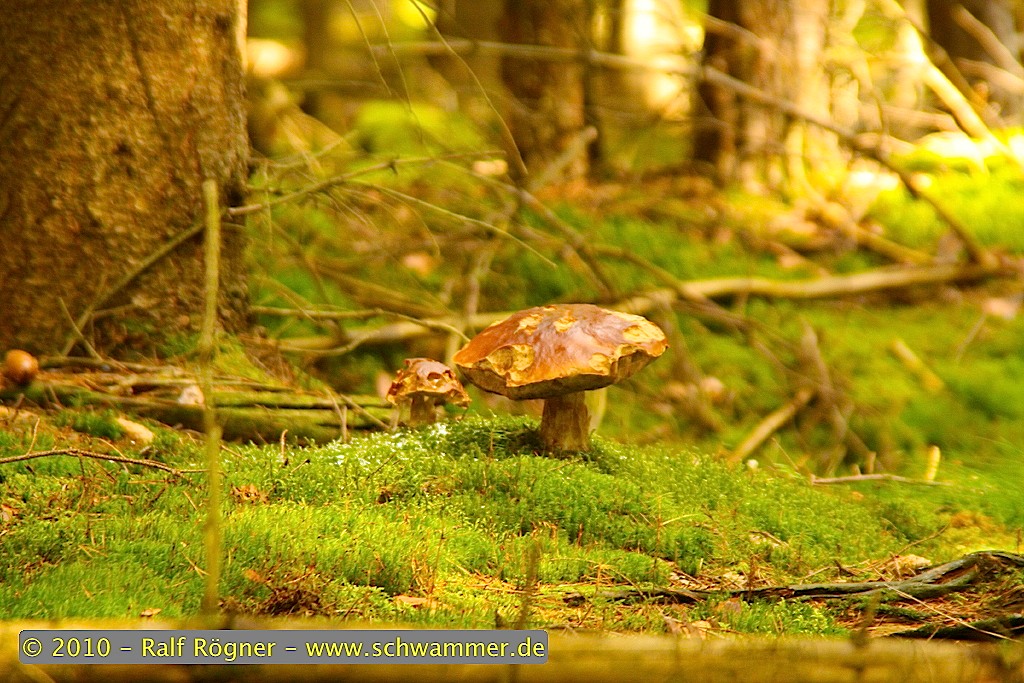 Ich hielt es zunächst für einen Steinpilz, war aber –œnur– ein Maronenröhrling. Einige Meter weiter dann dieser schöne Bursche: