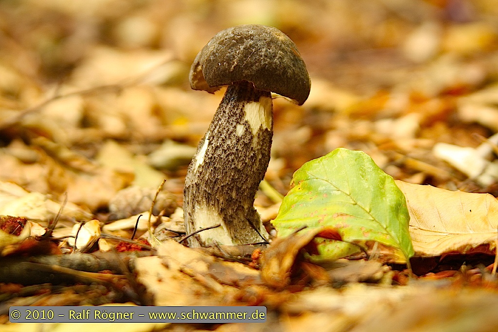 Als ich mich so langsam in Richtung –œAusgang– begeben will finde ich diesen schönen Gesellen, von dem ich noch nicht hundertprozentig überzeugt bin, in welche Gattung ich ihn stecken soll. Mit Sicherheit Leccinum (Raufußröhrling), wahrscheinlich Schwarzschuppiger Birkenröhrling, aber irgendwie erscheint mir die gesamte Färbung zu dunkel. Auf jeden Fall war er wunderschön anzusehen: